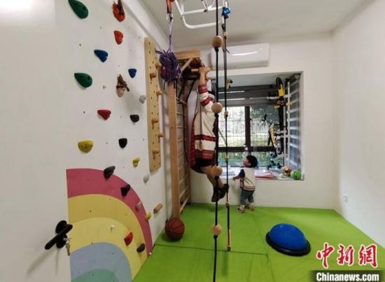 4月1日,廣西南寧,沙部·魯比在家中打造微型“運(yùn)動場”。當(dāng)天,在桂臺灣教師沙部·魯比喬遷新居,實(shí)現(xiàn)跨越海峽的“安居夢”。 中新社記者 張廣權(quán) 攝