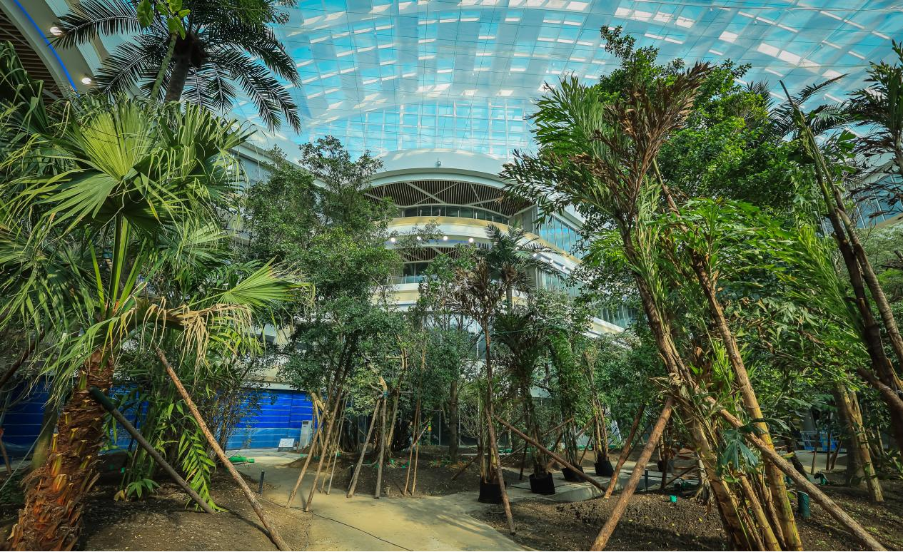 走進(jìn)建設(shè)中的長(zhǎng)春萬達(dá)茂,各商家即將進(jìn)入到裝修階段,記者看到在碩大的一樓空間內(nèi),兩側(cè)密集分布著餐飲、服裝、文創(chuàng)、汽車等不同業(yè)態(tài)的品牌商家。穿過商場(chǎng)來到中庭,這里就是備受矚目的室內(nèi)雨林,在東北難得一見的熱帶珍稀植物在這里茂盛生長(zhǎng)。