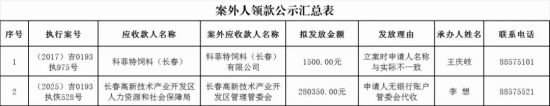 近日,長(zhǎng)春新區(qū)人民法院官方公眾號(hào)發(fā)布發(fā)放執(zhí)行案款公示(2025年第14期)。