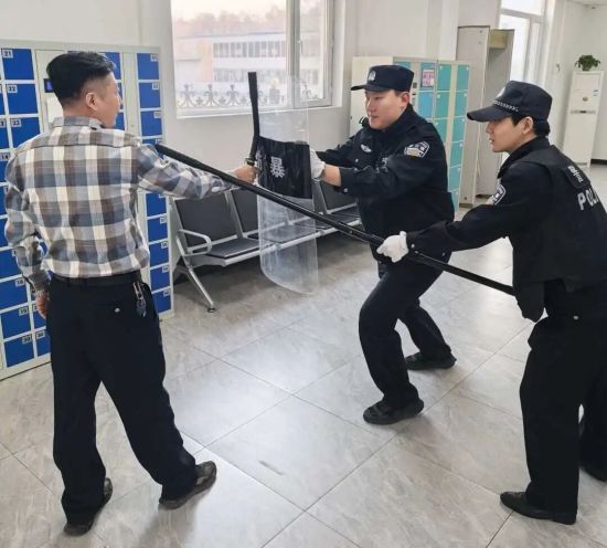在實戰(zhàn)演練環(huán)節(jié),模擬了安檢區(qū)發(fā)現(xiàn)可疑物品、突發(fā)沖撞等情景。參訓干警反應迅速、配合密切,規(guī)范運用警械裝備,有效實施了控制、帶離、警戒等處置程序,展現(xiàn)了良好的戰(zhàn)術素養(yǎng)和應急反應能力。