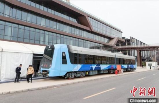 軌道行業(yè)創(chuàng)新產(chǎn)品在京展示 氫燃料鉸接輕軌車(chē)亮相
