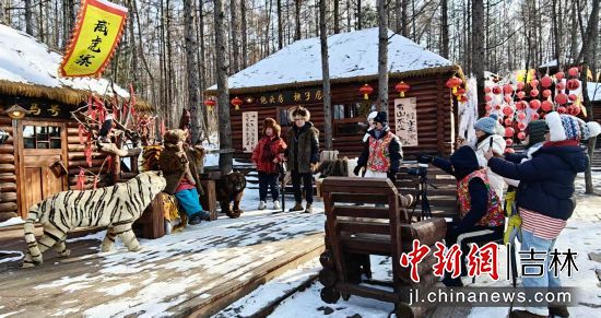 愛心玫瑰與雪人谷成為打卡熱點(diǎn),百余個(gè)創(chuàng)意雪人錯(cuò)落分布,雪雕玫瑰形態(tài)各異,游客爭(zhēng)相合影。關(guān)東文化園威虎山土匪寨角色扮演區(qū)人氣爆棚,游客換上土匪服飾,手持道具槍模擬“打土匪”互動(dòng),笑聲與吶喊聲中重現(xiàn)歷史場(chǎng)景。“這比單純滑雪更有意思!”游客王先生興奮地表示,“土匪寨體驗(yàn)讓我仿佛穿越回關(guān)東時(shí)代,文化元素讓冰雪活動(dòng)更鮮活!