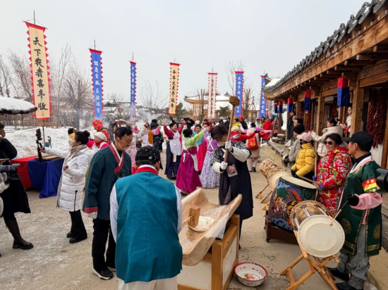 活動推出開放式沉浸式文旅體驗(yàn)線路,將刀畫、松花石雕刻等非遺技藝展演融入其中,設(shè)置了冰上套圈贏年貨、簡易冰壺等6大全年齡段友好型冰雪趣味項(xiàng)目,同時推出殺年豬、鐵鍋燉等本土特色美食,明太魚坊、粉條坊等特色業(yè)態(tài)集中亮相,更有手磨咖啡搭配現(xiàn)烤打糕的特色休閑體驗(yàn),為游客增添新春暖意;顒赢(dāng)天邀請了100余名網(wǎng)絡(luò)達(dá)人深度探訪打卡,累計發(fā)布宣傳作品200余條,單直播間最高瀏覽量突破500萬。春節(jié)期間,活動已接待游客近3萬人次,獲得各級官方媒體及新媒體平臺重點(diǎn)宣推,相關(guān)內(nèi)容總播放量破千萬,實(shí)現(xiàn)線上線下流量雙向豐收。