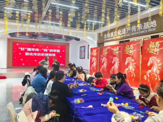 敦化市歷史博物館開展的“針藏年味·線納新福——敦化新年手作編織禮韻雅集”活動溫情滿滿,非遺老師帶領(lǐng)游客一針一線編織新年禮物,指尖流轉(zhuǎn)間,傳統(tǒng)年俗的魅力盡顯。