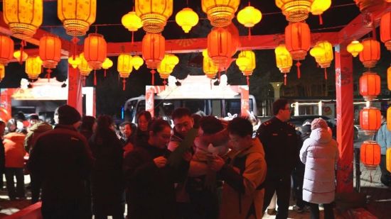 夜幕初臨的長(zhǎng)白山文化博覽城,早已被濃濃的節(jié)日氛圍包裹。成排的紅燈籠高高掛起,趣味燈謎懸于半空,構(gòu)成一道亮麗的風(fēng)景。市民和游客踴躍參與互動(dòng)競(jìng)猜,或低頭凝神思索,或與家人朋友輕聲討論,沉浸式體驗(yàn)傳統(tǒng)民俗的樂(lè)趣。