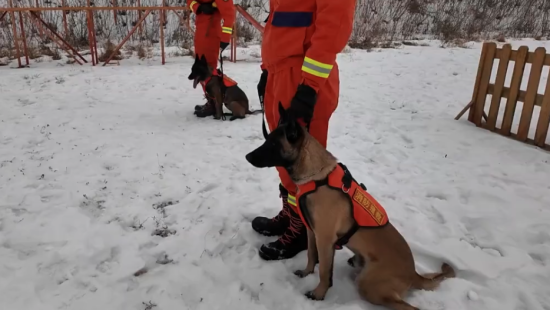 吉林長(zhǎng)春:新搜救犬冬訓(xùn)磨練“十八般武藝”