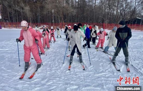 研學(xué)團(tuán)成員在長(zhǎng)春凈月潭體驗(yàn)滑雪樂(lè)趣。 吉林省文旅廳供圖