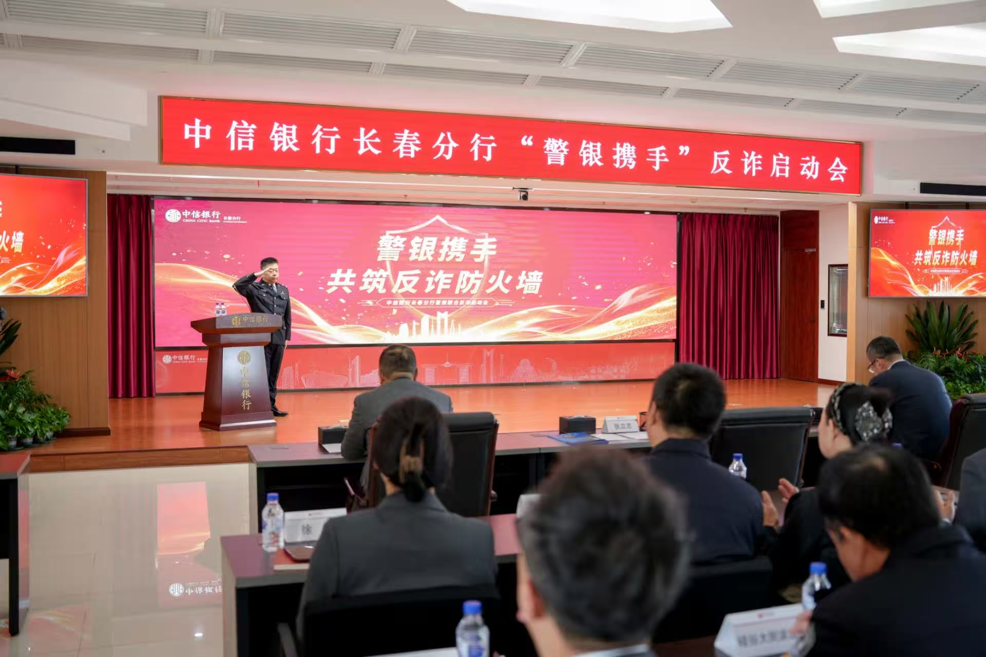 10月23日上午9時(shí),中信銀行長(zhǎng)春分行與長(zhǎng)春市公安局刑偵支隊(duì)聯(lián)合舉行“警銀攜手,共筑反詐防火墻”啟動(dòng)會(huì)開(kāi)啟儀式。市局刑偵支隊(duì)有關(guān)領(lǐng)導(dǎo)及反電信網(wǎng)絡(luò)詐騙中心專(zhuān)家,吉林金融監(jiān)管局消保部門(mén)負(fù)責(zé)人、各區(qū)派出所民警、社區(qū)代表、老年大學(xué)相關(guān)負(fù)責(zé)人,以及中信銀行總分行相關(guān)領(lǐng)導(dǎo)和員工代表共同參會(huì)。
