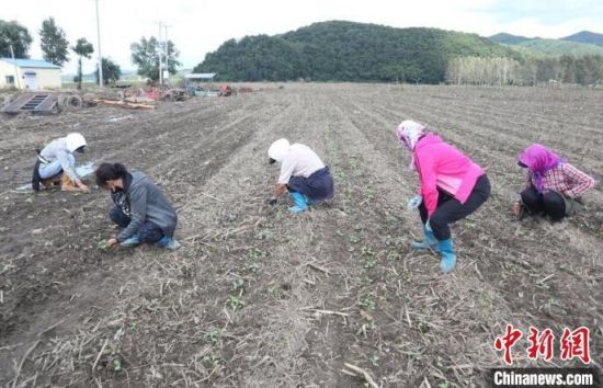 新開村村民正在“間苗”。記者 蒼雁 攝
