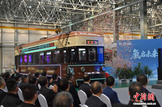 10月16日,中國首列氫能文旅列車“氫春號”在吉林長春正式下線!≈行律缬浾 張瑤 攝