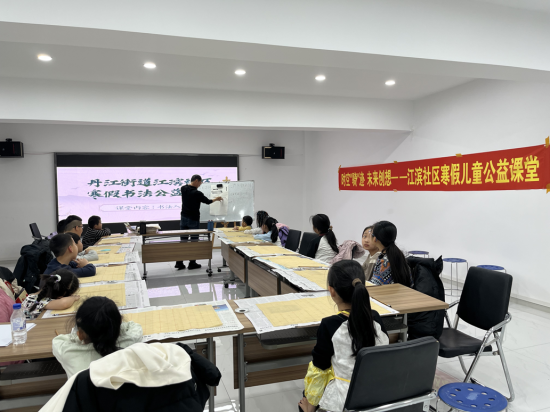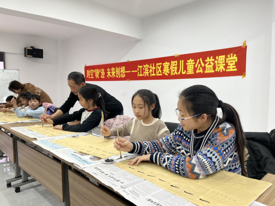 翰墨飄香潤(rùn)育童心,筆走龍蛇書(shū)寫(xiě)成長(zhǎng)。江濱社區(qū)黨委以傳承中華優(yōu)秀傳統(tǒng)文化為抓手,依托書(shū)法公益課堂搭建文化傳承平臺(tái),以筆墨傳文化、以書(shū)香育新人。一是名師領(lǐng)航夯基礎(chǔ)。邀請(qǐng)轄區(qū)書(shū)法教師段老師現(xiàn)場(chǎng)授課,以專業(yè)教學(xué)助力孩子們感受書(shū)法魅力、傳承優(yōu)秀文化;二是循序漸進(jìn)長(zhǎng)才干。段老師從握筆姿勢(shì)、基本筆畫(huà)教起,聚焦楷書(shū)基礎(chǔ),通過(guò)示范指導(dǎo)、一對(duì)一糾正,幫助孩子們?cè)鷮?shí)掌握書(shū)寫(xiě)技巧,培養(yǎng)持之以恒的韌勁、嚴(yán)謹(jǐn)認(rèn)真的態(tài)度、精益求精的追求;三是以書(shū)潤(rùn)心強(qiáng)自信。結(jié)合書(shū)寫(xiě)春聯(lián)、福字等形式,與孩子們一同揮毫潑墨,讓孩子們?cè)诠P墨間體悟傳統(tǒng)文化的博大精深,在書(shū)寫(xiě)中根植文化自信,在傳承中凝聚民族力量,推動(dòng)中華優(yōu)秀傳統(tǒng)文化在青少年中薪火相傳。