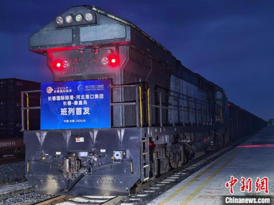 6月17日晚,長春至河北秦皇島港的鐵海聯(lián)運(yùn)班列啟運(yùn)。(長春國際陸港發(fā)展有限公司供圖)