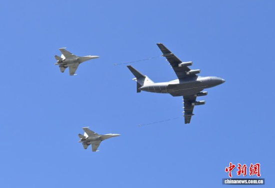 9月16日,吉林長(zhǎng)春,運(yùn)油-20A(右一)與殲-16雙機(jī)編隊(duì)通場(chǎng)!埇 攝