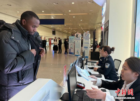 1月20日,吉林長春,外國留學(xué)生在長春龍嘉國際機場“吉便利”出入境一站式綜合服務(wù)窗口辦理相關(guān)業(yè)務(wù)。 中新社記者 張瑤 攝