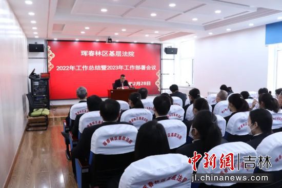 中新網吉林新聞3月1日電 (譚偉旗 劉思妤)2月28日,琿春林區(qū)基層法院召開2022工作總結暨2023年工作部署會議,全面總結和回顧2022年各項工作,并對今年各項工作進行部署。該院黨組成員、副院長李忠臣主持會議,黨組書記、院長鄭國榮出席會議并講話,該院全體干警參加會議。