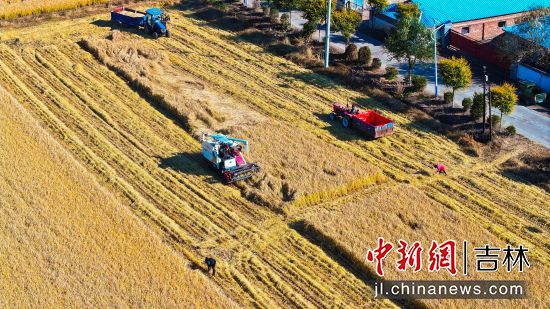 延吉市水稻開(kāi)鐮收割 豐收田間繪就“金色畫(huà)卷”