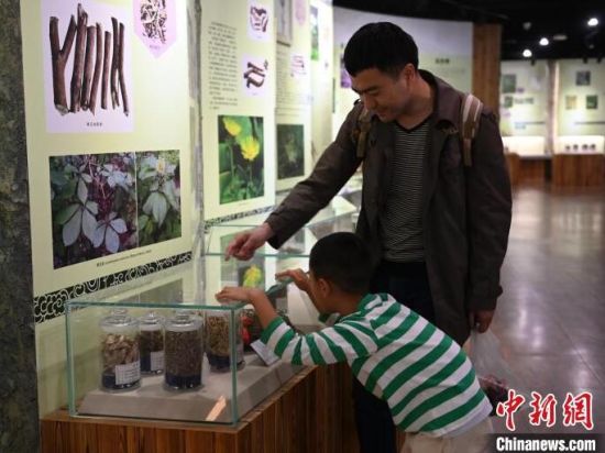 嚴進軍帶著6歲的兒子參觀中醫(yī)藥博物館!埇 攝