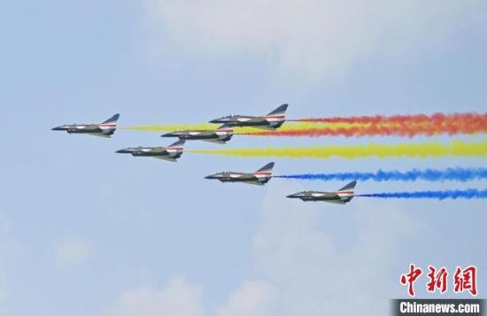 八一飛行表演隊在進行飛行表演。張瑤 攝