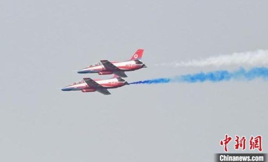 紅鷹飛行表演隊在進行飛行表演。張瑤 攝