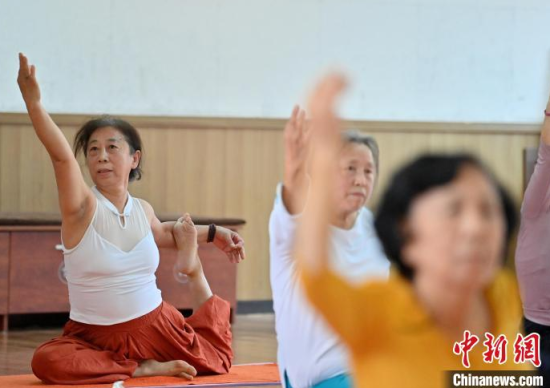 10月24日,在位于吉林長(zhǎng)春的吉林省老年大學(xué),老年人在練習(xí)瑜伽。近來(lái),越來(lái)越多老年人在運(yùn)動(dòng)中煥新生活,瑜伽也不再是年輕人的專屬。在老年人的眼中,瑜伽鍛煉了體態(tài)和精神面貌,讓他們看起來(lái)“越來(lái)越年輕”。中新社記者 張瑤 攝