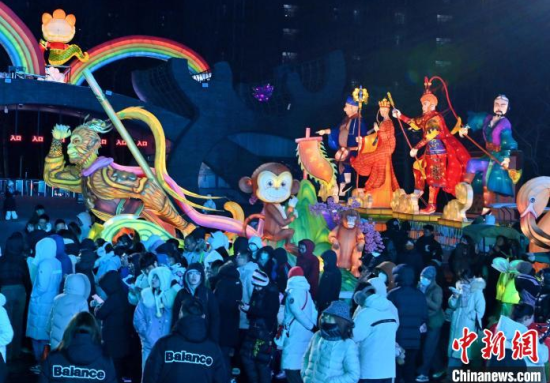 12月5日,在長春市動(dòng)植物公園,“孫悟空”在與游客互動(dòng)。當(dāng)天,該園“西游記主題樂園”重新開放,吸引全國各地游客"沉浸式”體驗(yàn)中國傳統(tǒng)文化。  中新社記者 張瑤 攝