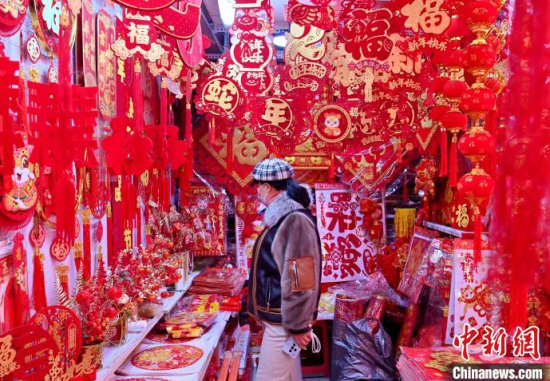 1月20日,民眾在長春樂山大集上選購商品。歷經(jīng)百年的樂山大集,是長春市具有代表性的傳統(tǒng)大集。春節(jié)臨近,大集更加熱鬧,傳統(tǒng)年貨一應(yīng)俱全,民眾辦年貨、品美食,熱鬧非凡。中新社記者 張瑤 攝