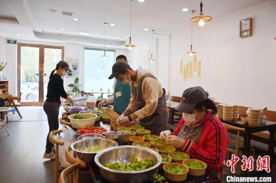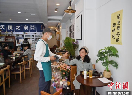 5月8日,吉林長(zhǎng)春,“天使之家”餐飲店的店員在收拾餐桌。這里的部分工作人員是孤獨(dú)癥患者,這家店旨在助力青年孤獨(dú)癥群體就業(yè),融入社會(huì)。他們通過訓(xùn)練,已經(jīng)可以完成切菜、備餐、收拾店內(nèi)衛(wèi)生、撤餐等工作。中新社記者 張瑤 攝