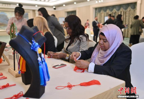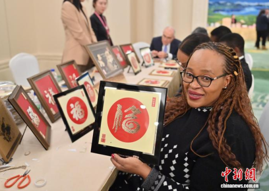 12月16日,由中國外交部組織的駐華使節(jié)代表團赴吉林省參訪。當晚,代表團成員體驗了查干湖魚皮制作、長白山滿族剪紙、白氏面塑、繩編和趙家傳統(tǒng)古箏技藝等多項吉林省非物質文化遺產代表性項目,近距離了解中國傳統(tǒng)技藝及其傳承現(xiàn)狀。中新社記者 張瑤 攝