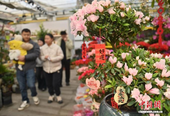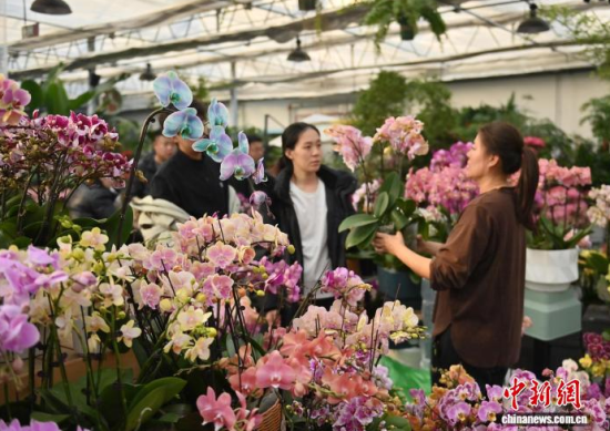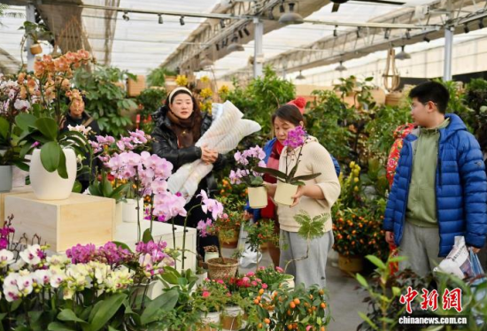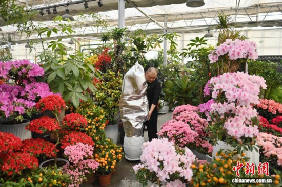 2月9日,吉林長春,商家在修剪鮮花。春節(jié)臨近,長春市各大花卉市場迎來年宵花銷售熱潮。蝴蝶蘭、大花蕙蘭、杜鵑花等象征喜慶的鮮花琳瑯滿目,吸引眾多市民前來選購;ㄉ虃兠β祩湄、打包,現(xiàn)場一片繁忙景象。中新社記者 張瑤 攝