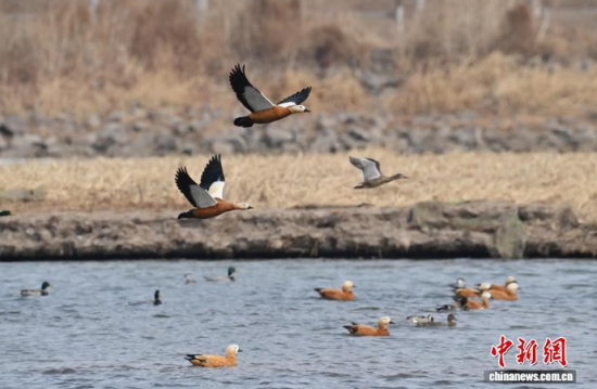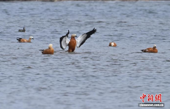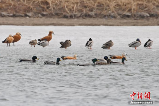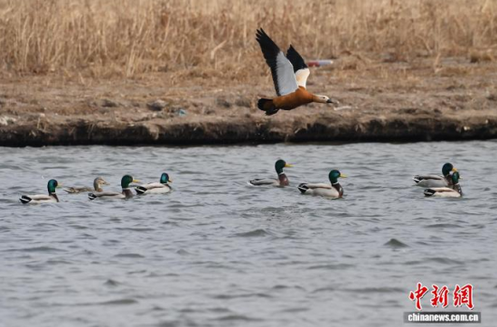 3月13日,長春市伊通河上演“春江水暖鴨先知”的生動景象。隨著氣溫回升,冰封的河面逐漸融化,近千只赤麻鴨、綠頭鴨等越冬水鳥齊聚未封凍的水域。它們時而在水中嬉戲覓食,時而在藍天列隊飛翔,與尚未消融的冰雪相映成趣,為城市增添了勃勃生機。中新社記者 張瑤 攝