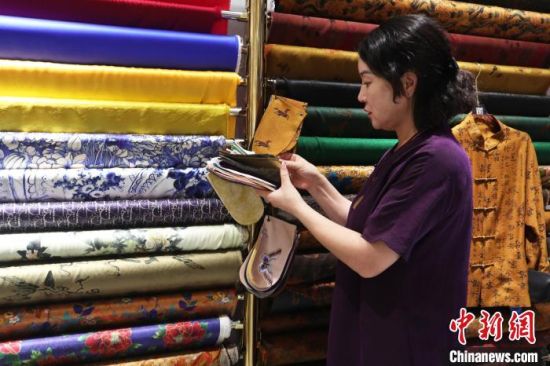 朱文俊介紹,近些年隨著中式服裝走俏,滿族旗袍也在“圈粉”年輕消費者!坝绕涫墙衲,年輕客戶數(shù)量增長很快!