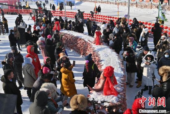 2023年中國(guó)查干湖第二十二屆冰雪漁獵文化旅游節(jié)開幕現(xiàn)場(chǎng)。(資料圖) 中新社記者 張瑤 攝