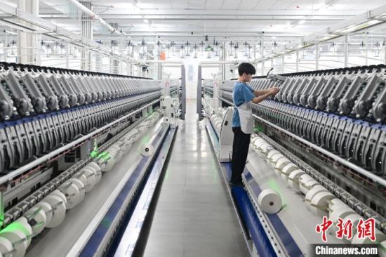 工人正在化纖生產(chǎn)線上忙碌。 田雨昊 攝