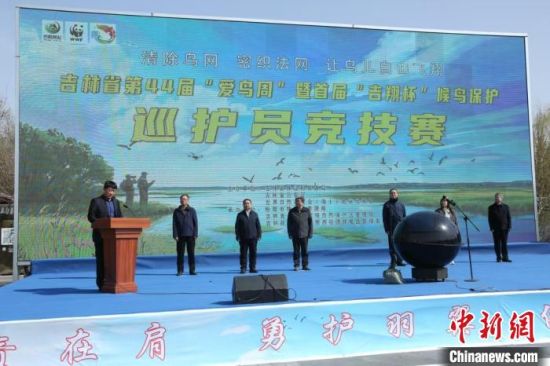 中新網(wǎng)松原4月23日電 (張瑤 魏靜 王靖)23日,吉林省第44屆“愛鳥周”暨首屆“吉翔杯”候鳥保護(hù)巡護(hù)員競(jìng)技賽啟動(dòng)儀式在吉林查干湖國家級(jí)自然保護(hù)區(qū)舉行。